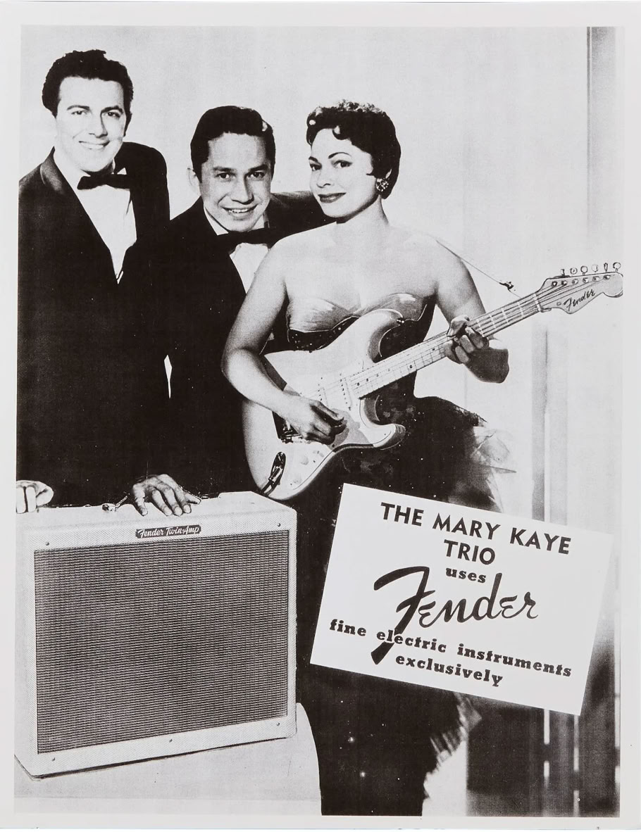 It was never intended to gift the guitar to Mary Kaye. She was a faithful player of D'Angelico Arch-Tops. Only in her senior years did she actually pick up and play Fenders and came to like them.