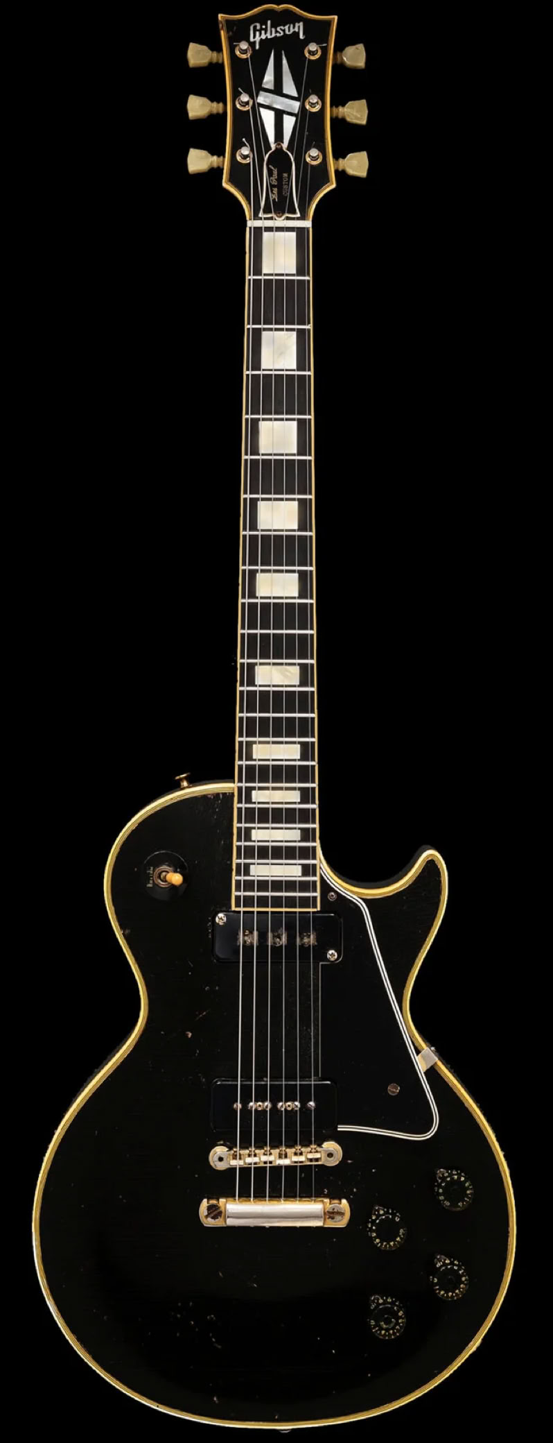The Black Beauty, The Fretless Wonder. The Tuxedo. Many names for this guitar. It was essentially Lester's request to have this made. He wanted a more luxurious and elegant Les Paul made. The result was the Custom with all black lacquer, fancier binding, inlay and gold hardware. It was premature to the LP Standard to adapt the ABR Bridge and had the correct 4° neck angle from start.