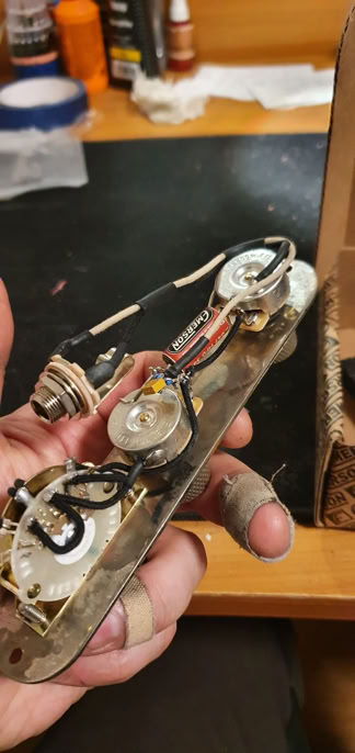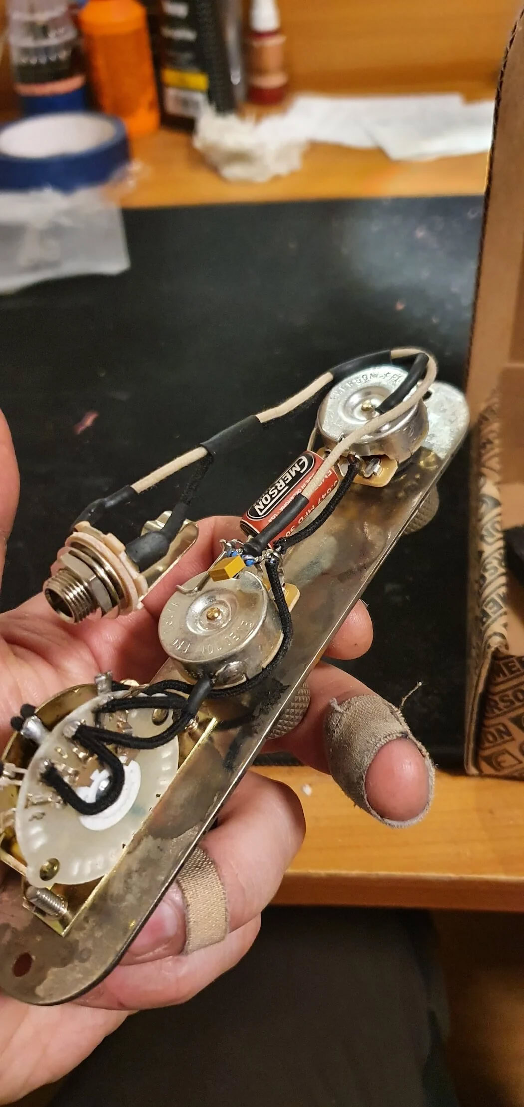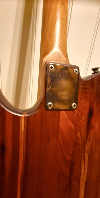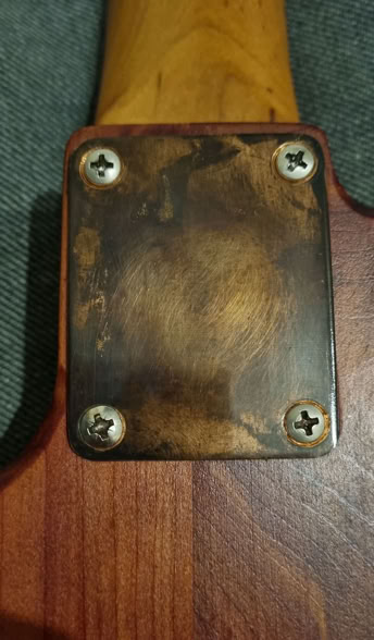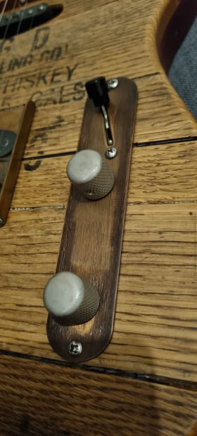 To keep the old and reclaimed look, i decided to go with relic parts. But to keep the cost down, i decided to learn and relic the parts myself. And so i did.. The control plate and neck plate are custom designed and aged by myself in later times. If you fancy yourself a set of these, i sell them in various metals over atEtsy