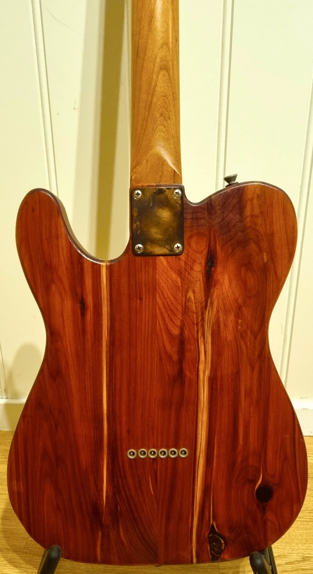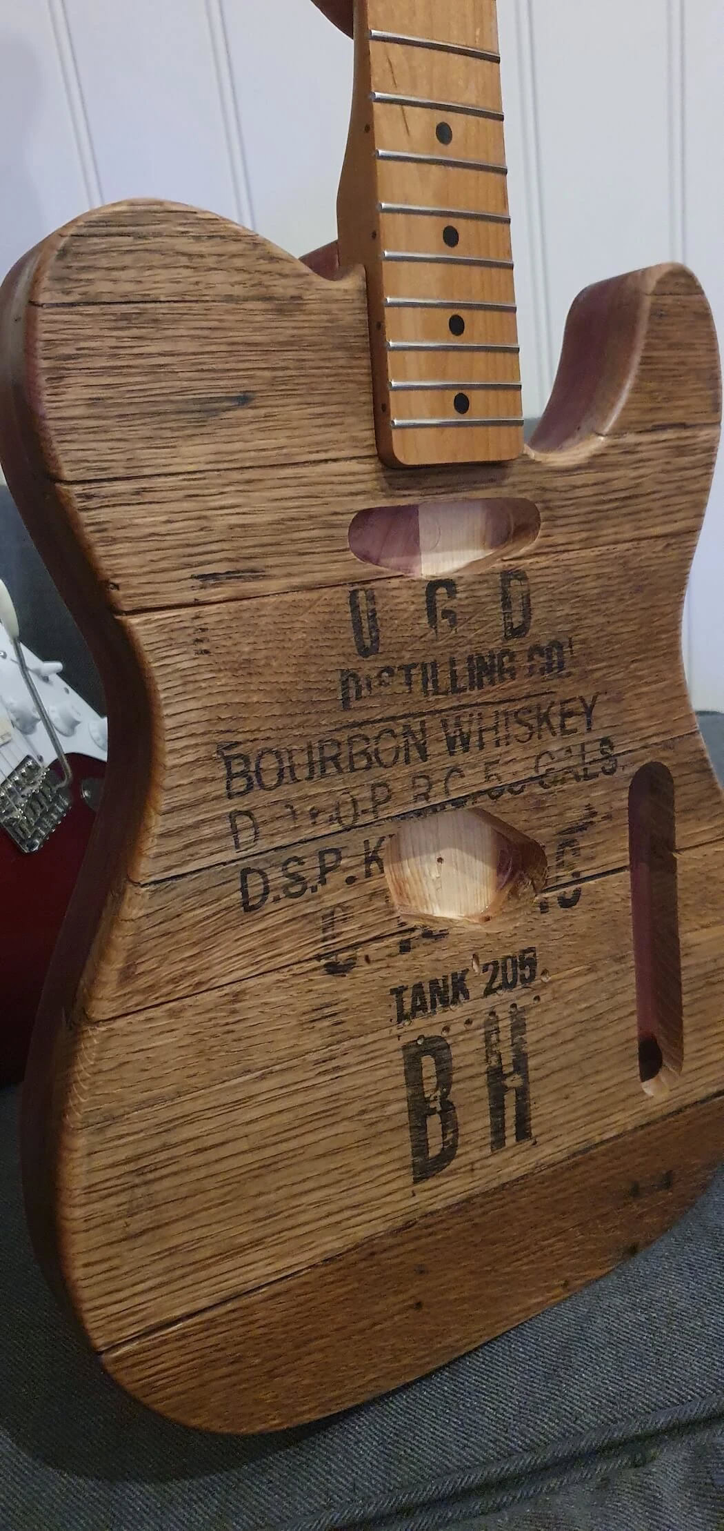The initial idea was to build a regular reclaimed wood or Barncaster. If you don´t know what these are it is basically old wood taken from very old torn down buildings and barns. Barns particularly have thick old support beams that has dried and aged over many decades. Some fine luthiers source these out and build them into telecasters and at the same time, do no intrusion to the way they look. They maintain all wormholes and nail holes and the charred old-age looks.