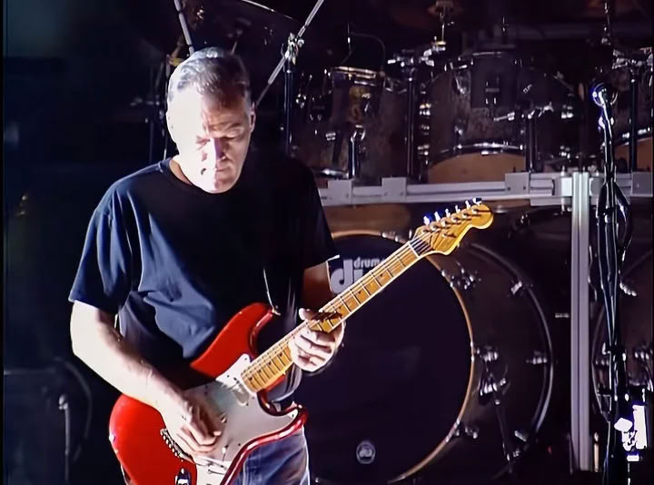 David picked three '57 Reissue Strats in three different colors. One of them was the Candy Apple Red Stratocaster. These guitars was early on fitted with the EMG SA-Pickups (Later released on its own as the DG-20 Signature Pickguard) The EMG was installed to combat much of the growing interference from the large stage rig Pink Floyd was traveling with