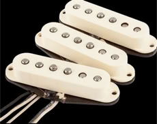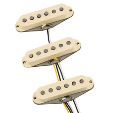 Glassy, bright and sparkly vintage tones on the cheap. With a high output bridge for rowdy tones. Probably the best affordable upgrade of pickups Fender has in production. Featured on Jimmy Vaughan Sign Strat.